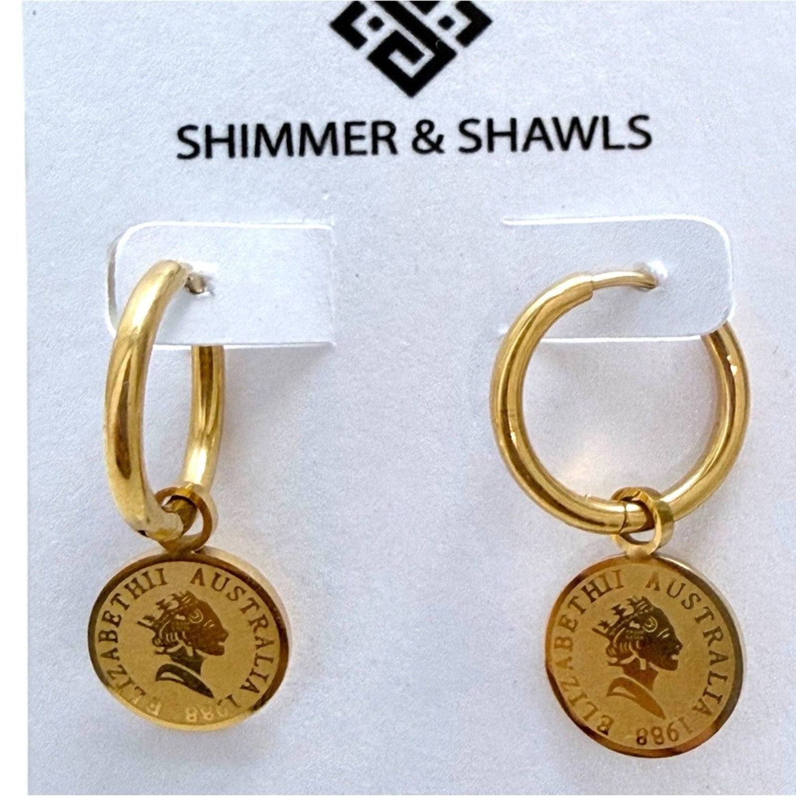 Gold Coin Hoop Earrings – Shimmer & Shawls Collection