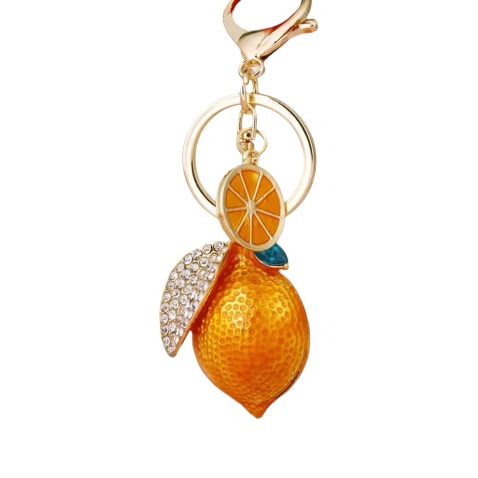 Amalfi Lemon & Orange Crystal Fruit Bag Purse Charm Keychain Yellow or Orange