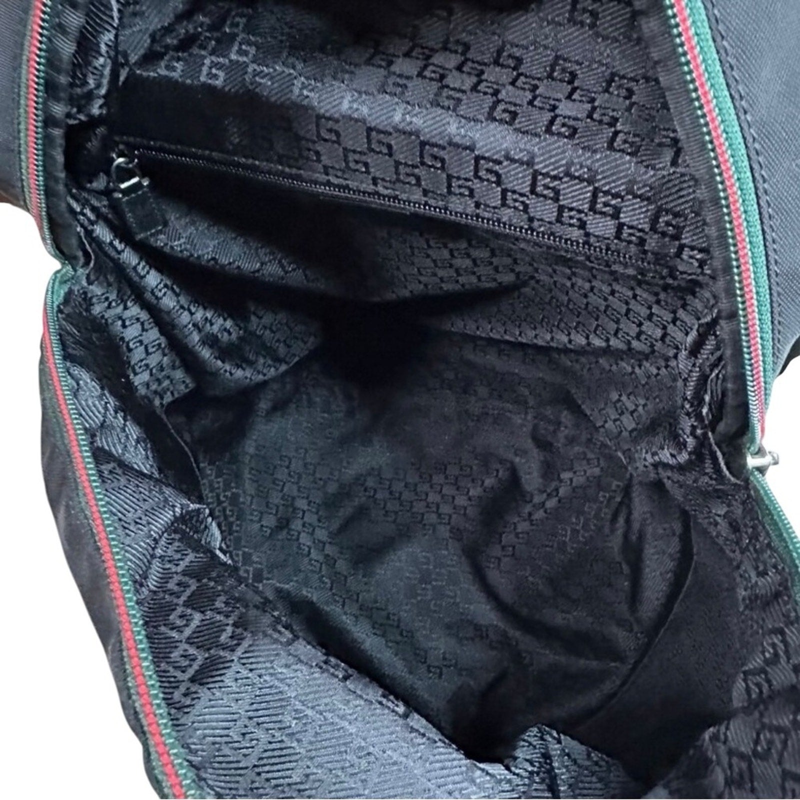 Authentic Gucci Sherry Line Web Nylon Backpack Black Green Red Stripe