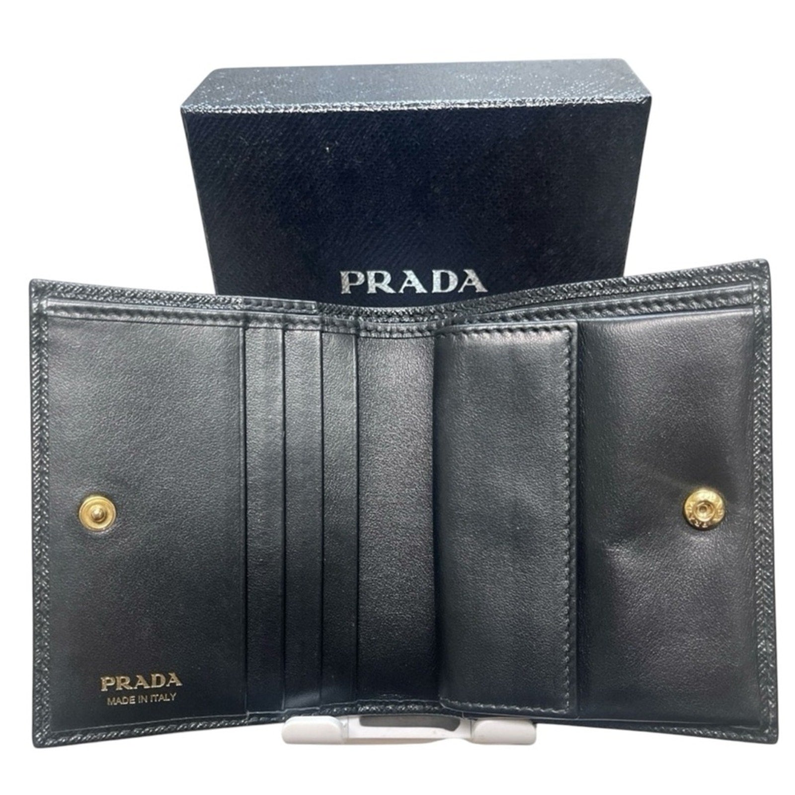 Prada Saffiano Monochrome Compact Wallet Black Leather NWOT w/ Box Authentic