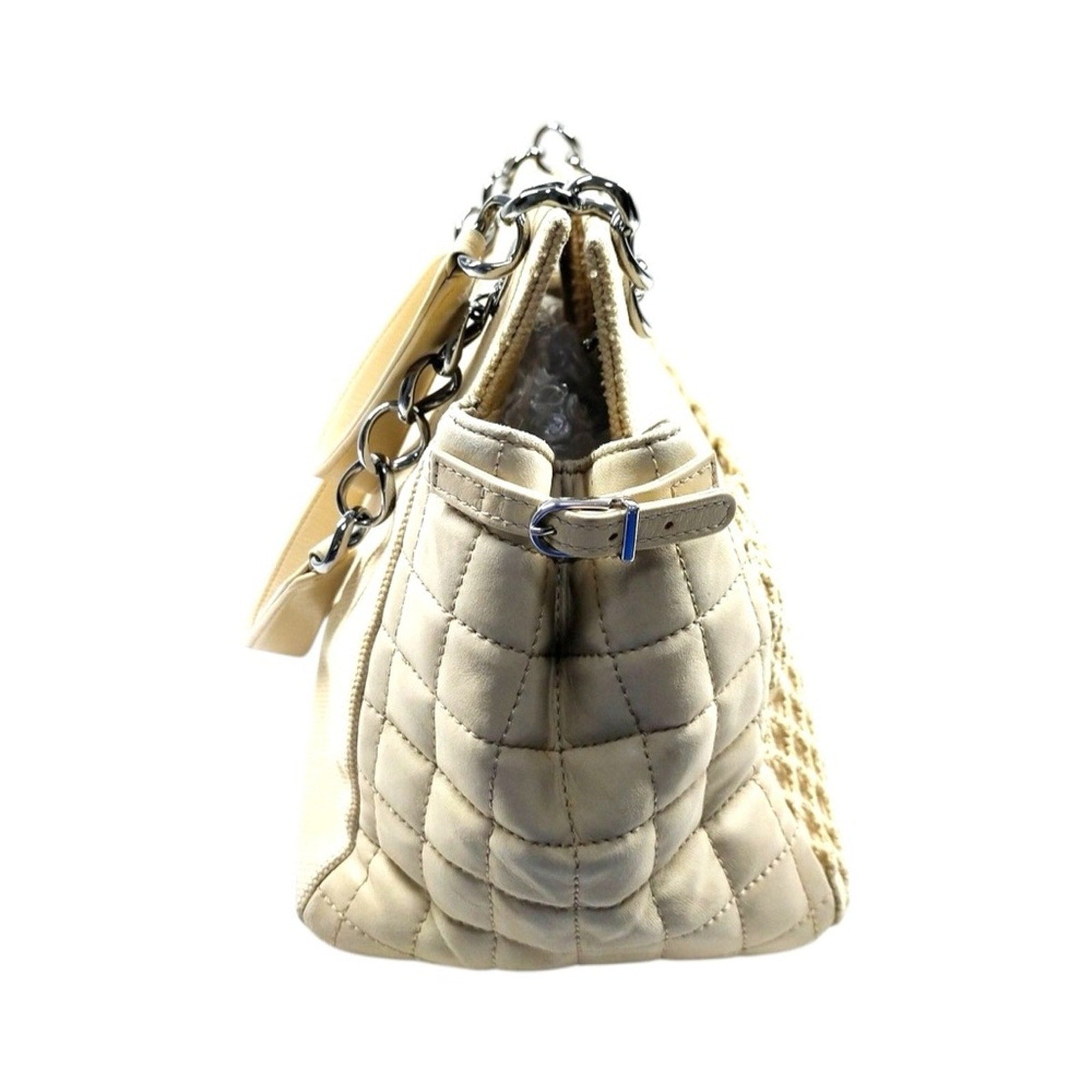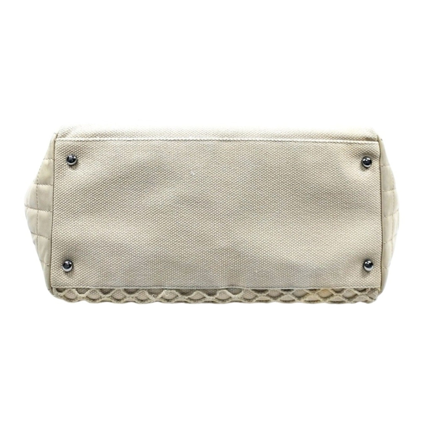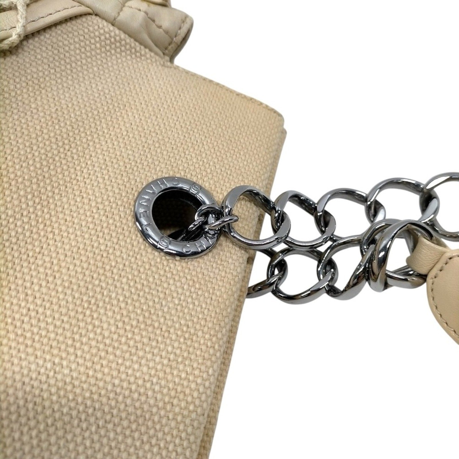 Chanel Chocolate Bar Cabas Net Tote Beige Canvas Quilted Leather Chain Bag
