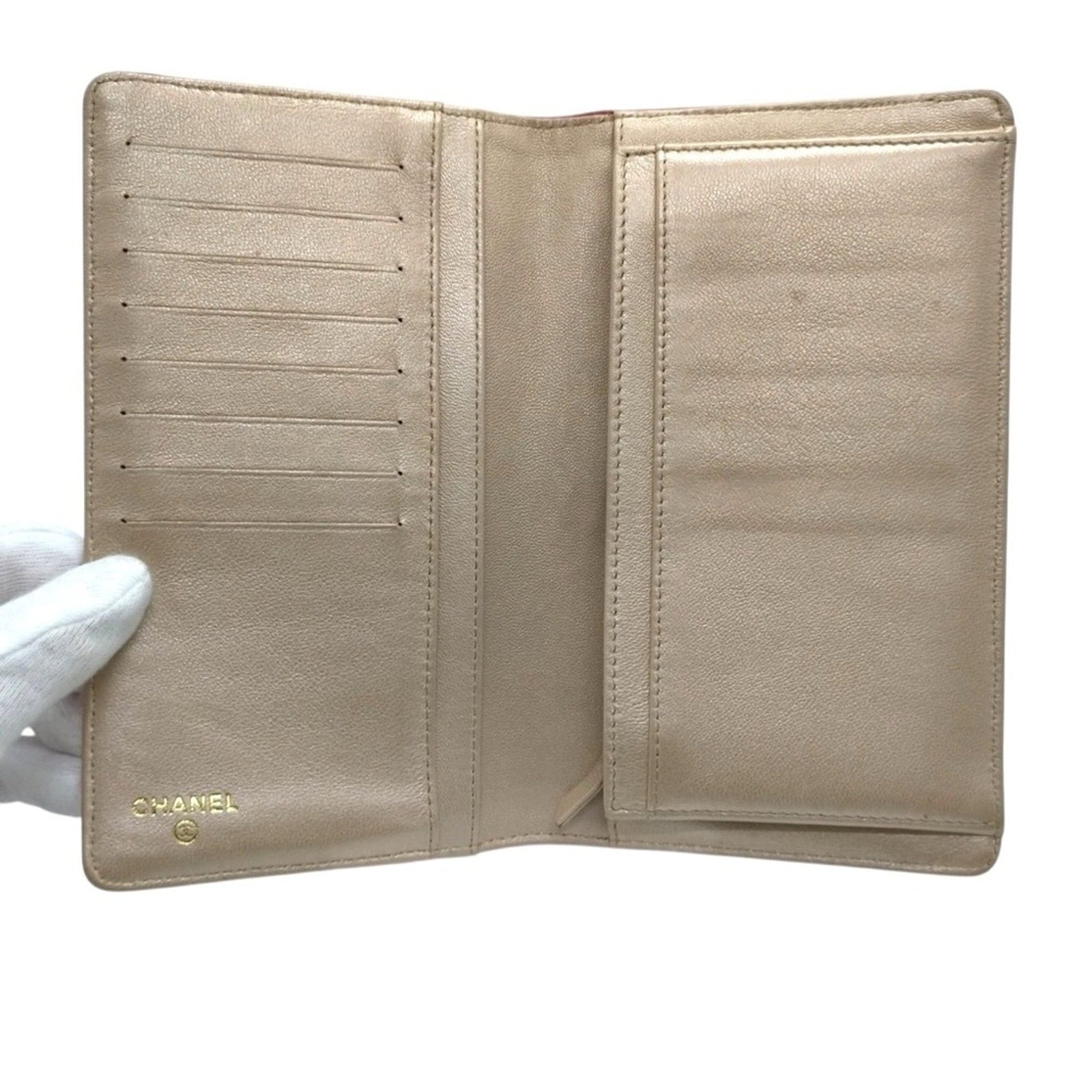 CHANEL Pink Camellia Embossed Long Bifold Leather Wallet