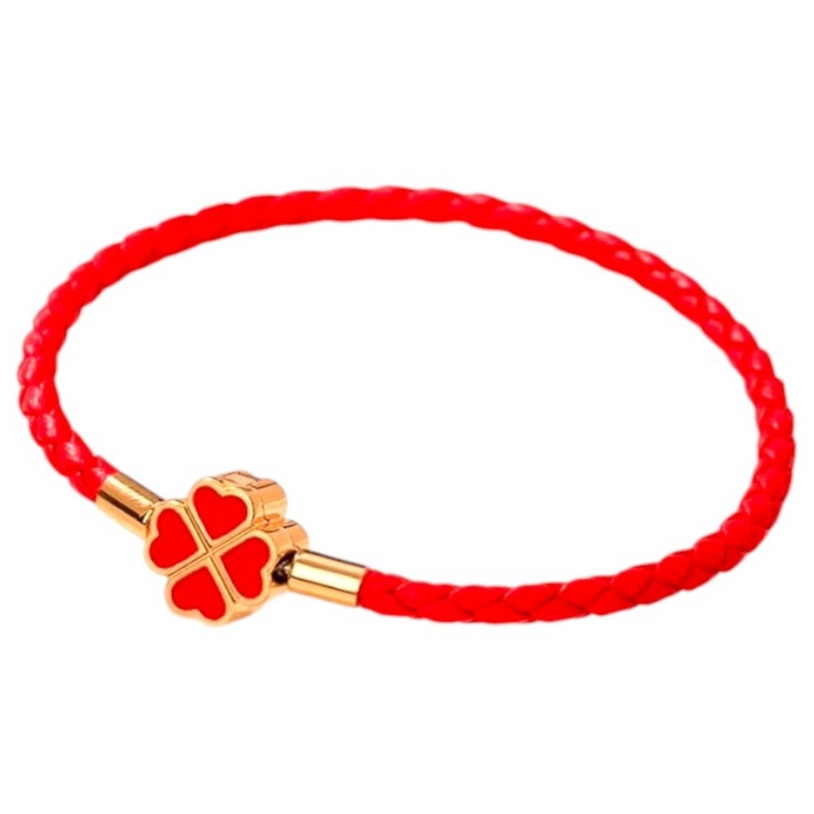 Genuine Woven Leather and Stainless Steel Four Leaf Clover Charm Bracelet