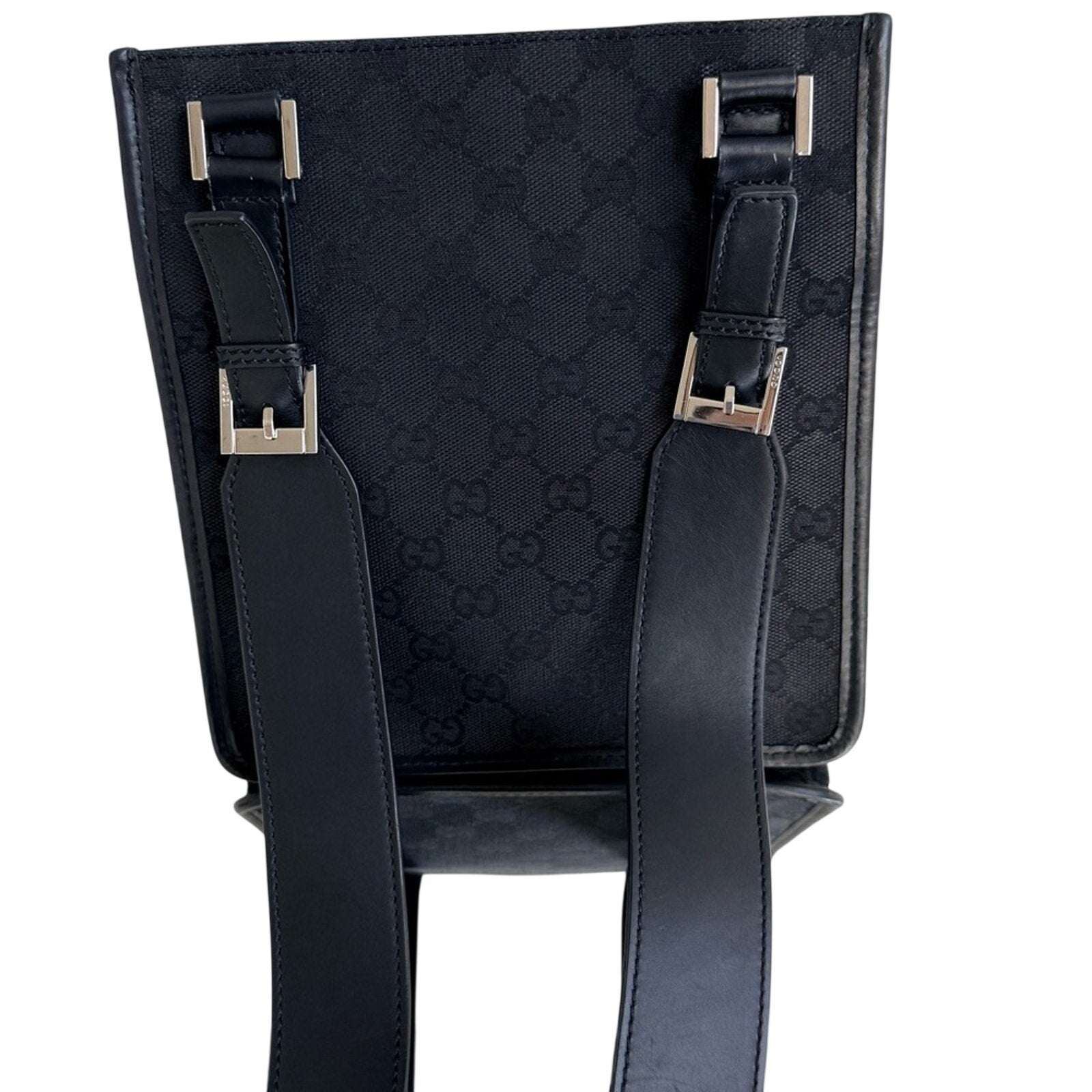 Gucci Black GG Canvas Crossbody Bag Unisex Italian Classic Silver Hardware