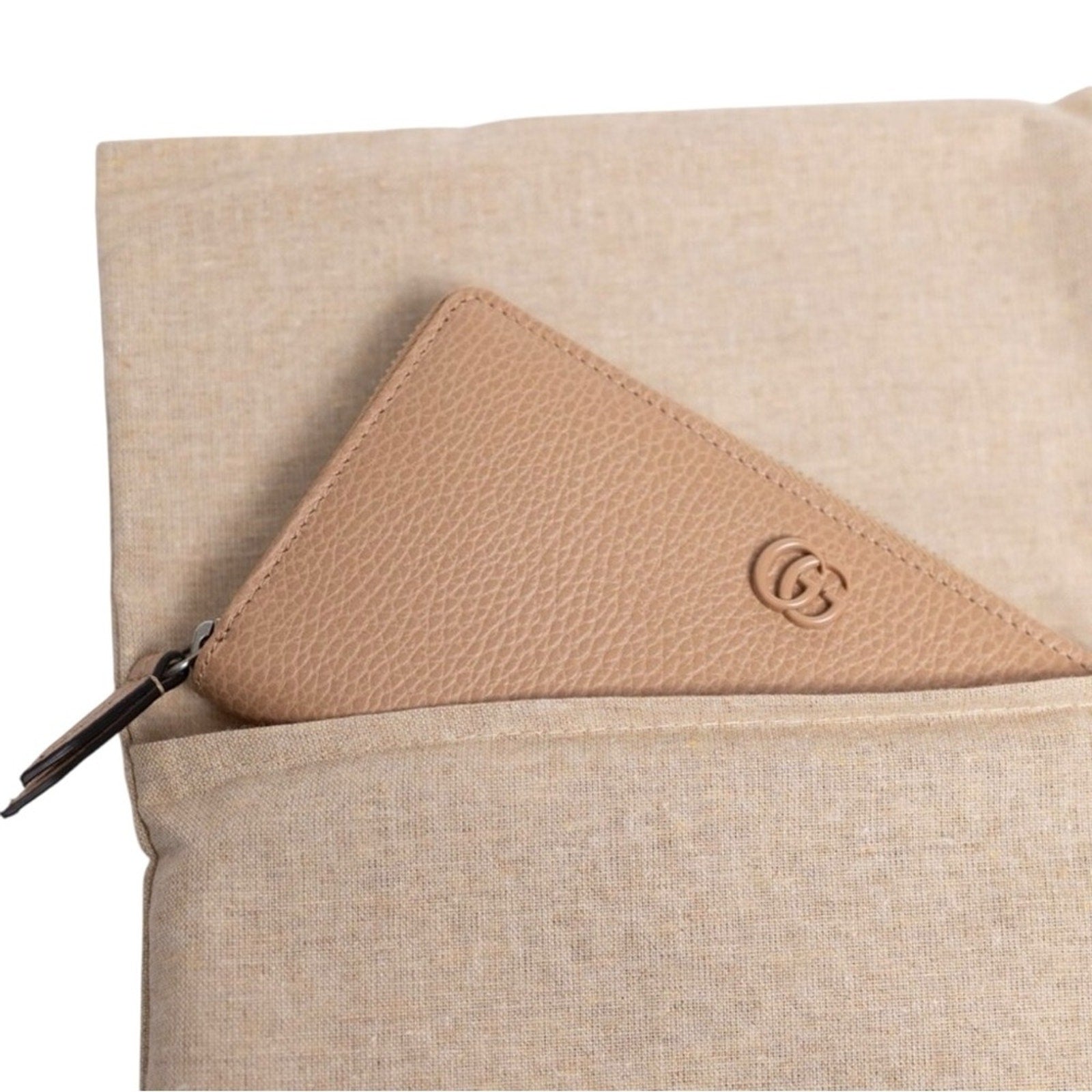 Meet your new everyday luxury. This beautiful Gucci GG Marmont zip-around wallet comes in the most elegant neutral beige — a timeless shade that pairs effortlessly with any bag or outfit. Crafted in soft pebbled leather with tone-on-tone Double G hardware, it’s the perfect blend of sophistication and modern minimalism.