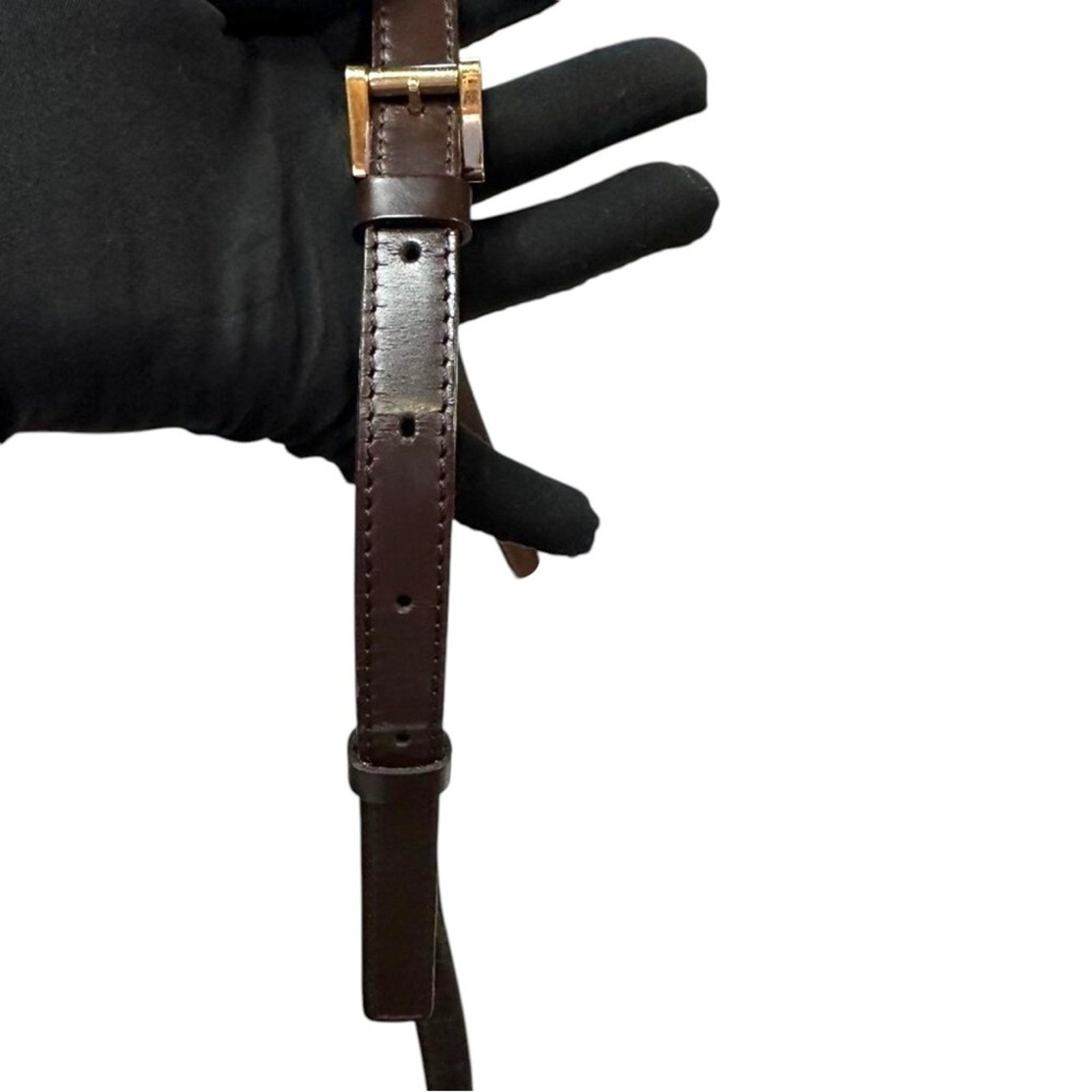 • Strap: Adjustable brown leather shoulder/crossbody strap