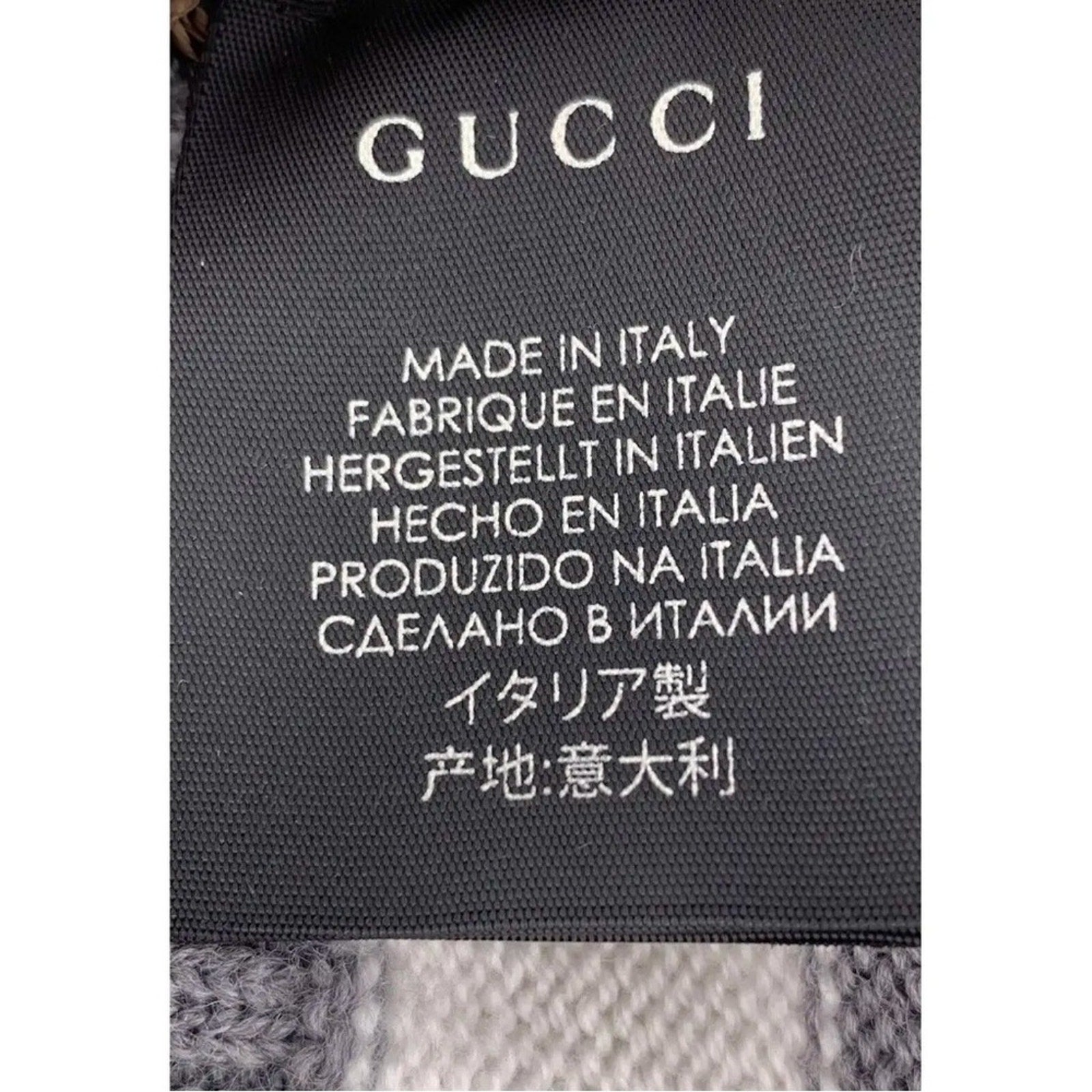 NWT & Box Gucci New Port Web Stripe Knit 100% Wool Beanie Hat Gray & White