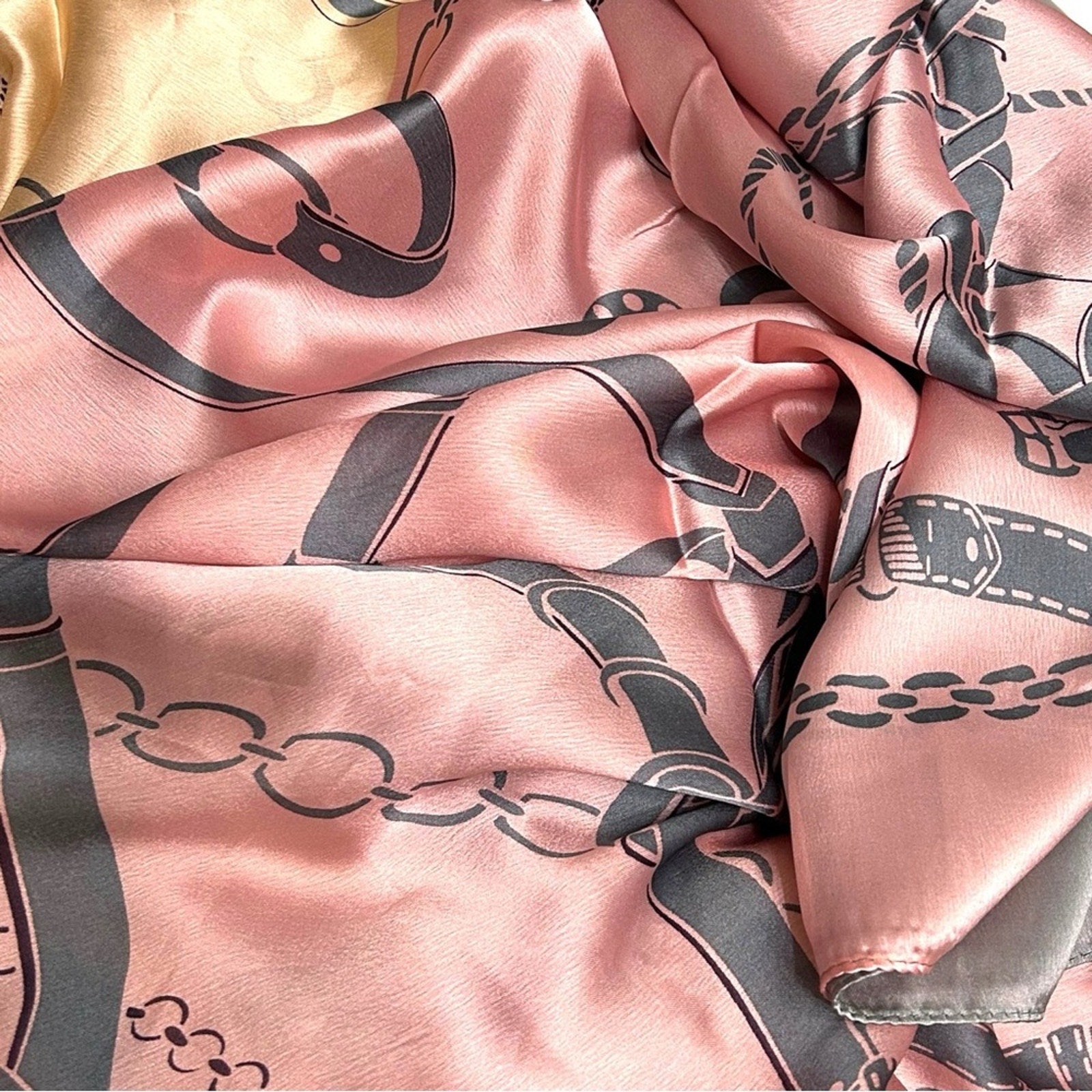 Pink Gray Equestrian Chain Silky Satin Scarf Shawl Wrap – Oversized Lightweight