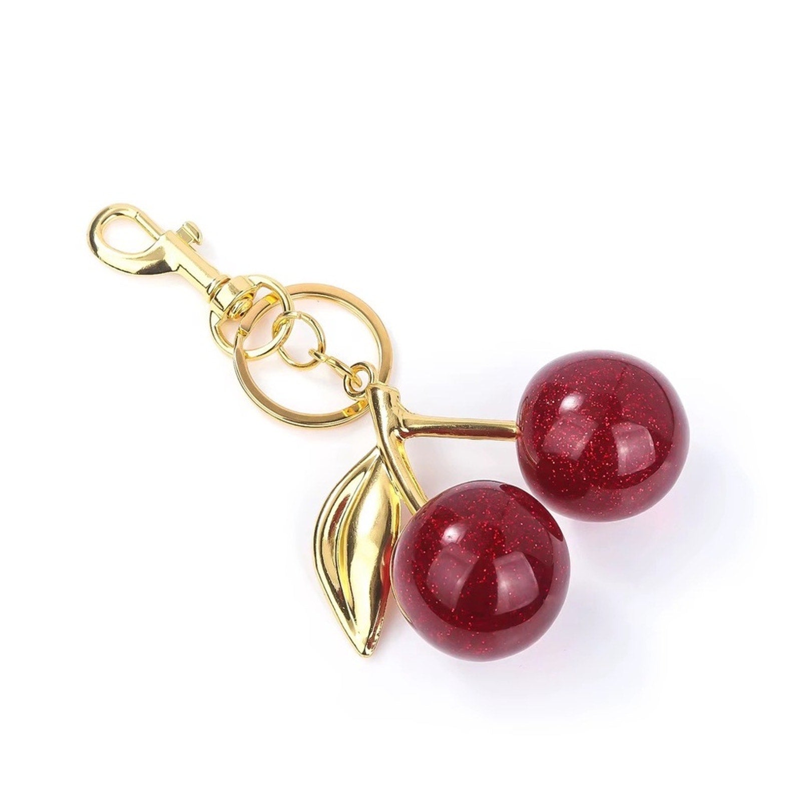 Cherry Bag Charm Keychain | Red Glitter Cherry Purse Charm with Gold Hardware